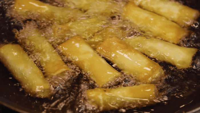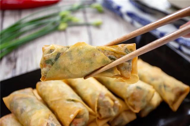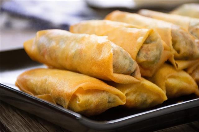 炸春卷时,入锅温度要低,但起锅时温度一定要高,不然就会吃油哦~