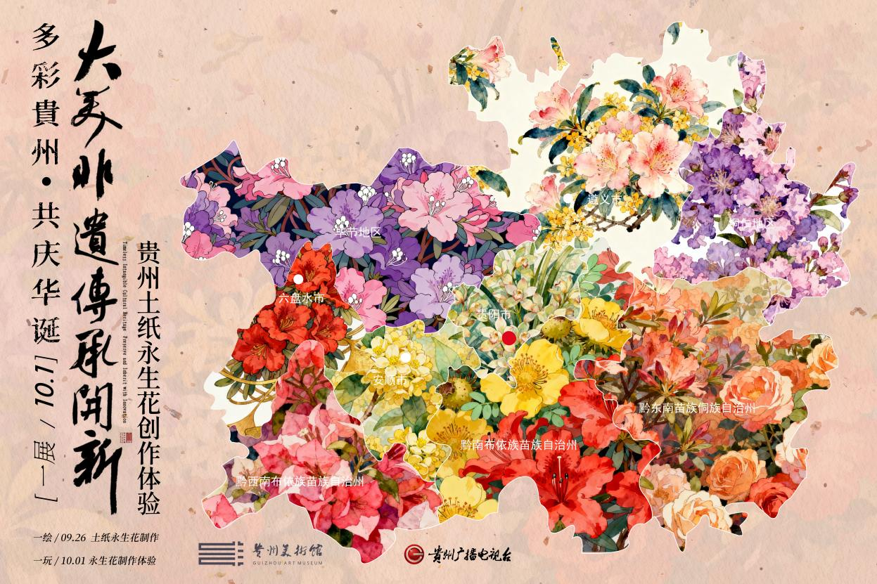金秋十月,丹桂飘香,在这举国同庆的日子里,一抹属于贵州的斑斓,正悄然绽放。10月1日,由贵州画院(贵州美术馆)主办、贵州广播电视台教育事业部承办的“【大美非遗 传承开新】多彩贵州·共庆华诞|贵州土纸永生花创作体验”活动顺利举办。指尖生花,共庆华诞,为这个国庆假期增添了一抹独特的文化亮色。