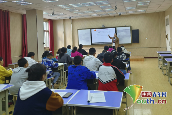 河北师范大学第24届研支团成员在天祝县民族中学讲授公开课。图为研支团成员武蕊在英语公开课上。河北师范大学研支团供图