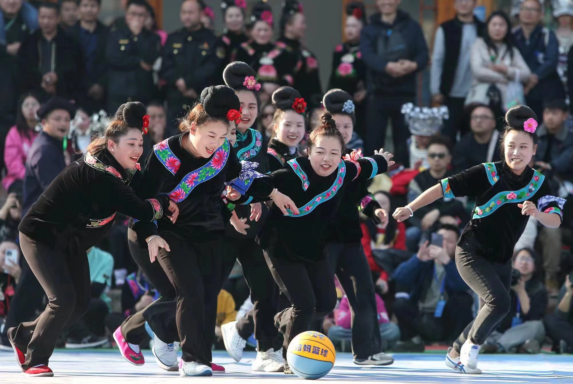 姑妈篮球赛作为贵州雷山春节期间的传统活动之一,已经成为当地嫁出去的姑娘,即“姑妈”们展示团结、友爱和活力的舞台。这项赛事不仅展现了苗族姑妈们美丽自信的风采,也展现了苗族同胞热情好客的真性情和欢乐美好的幸福生活。