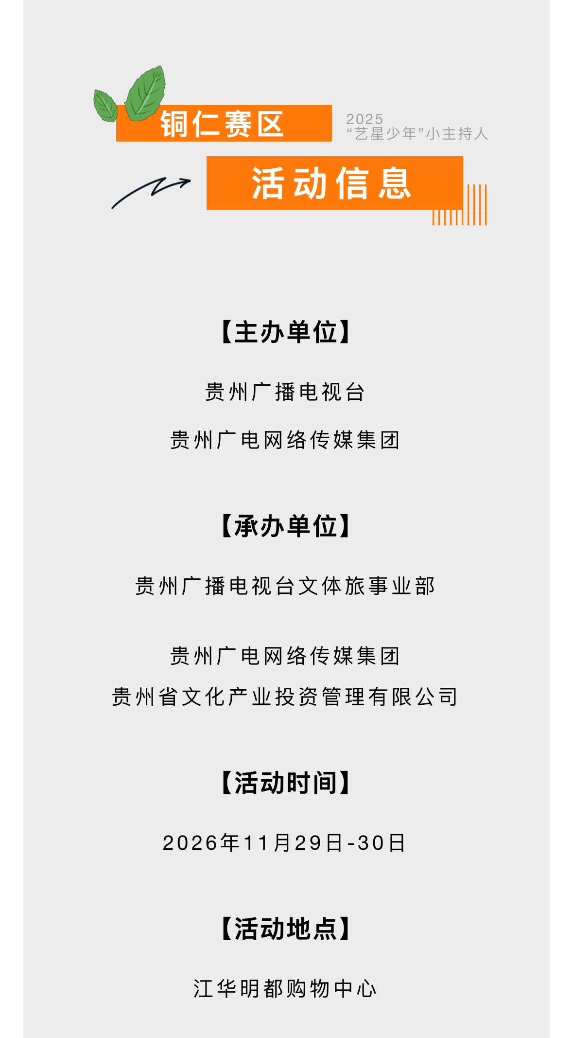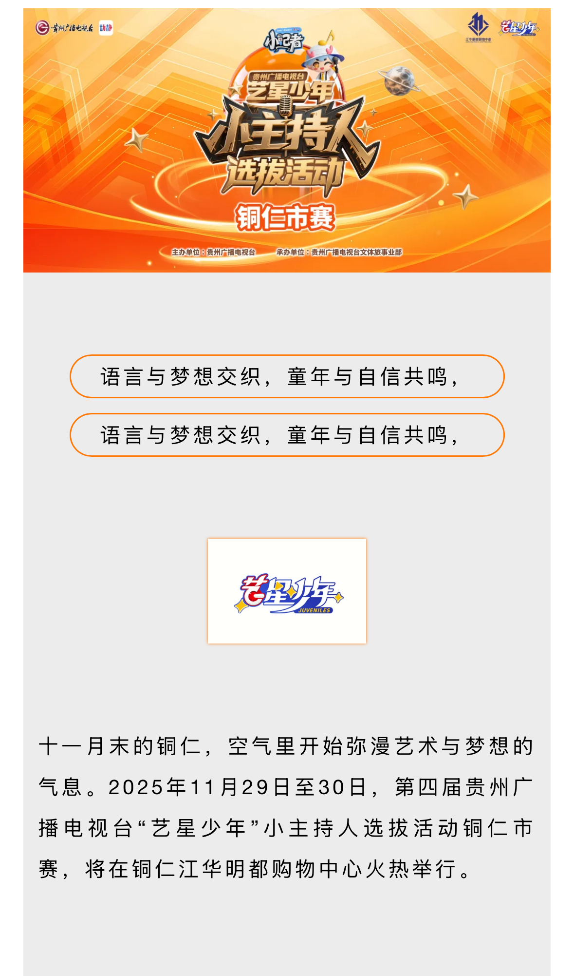 艺星少年·贵州广播电视台少儿语言艺术嘉年华——铜仁赛区选拔活动本周末开启!