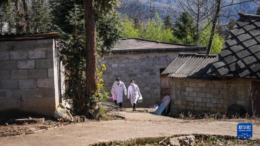 1月6日,医务工作者在六盘水市钟山区青林苗族彝族乡海发村走访。