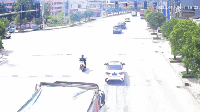 贵州交通广播记者从贵州省公安厅交通管理局获悉。近日,遵义市凤冈县何坝镇中医院附近的红绿灯前,摩托车驾驶员田某停在机动车道前等待左转的交通信号灯变绿时,一辆红色大货车以较快的速度出现在田某身后将他撞倒在地......
