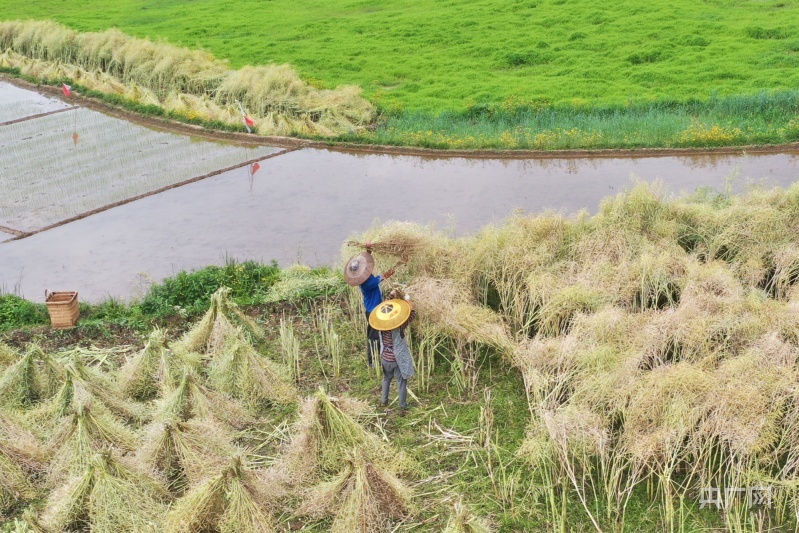 在黔东南州岑巩县水尾镇老寨村,村民正在收割油菜(央广网发 岑巩县融媒体中心供图)