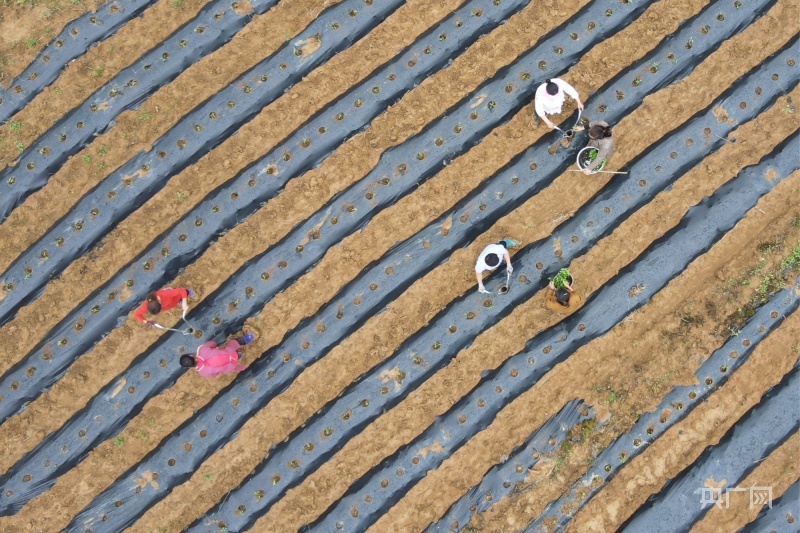 在黔东南州岑巩县大有镇腊恰畈村,农民正在移栽辣椒苗(央广网发 岑巩县融媒体中心供图)