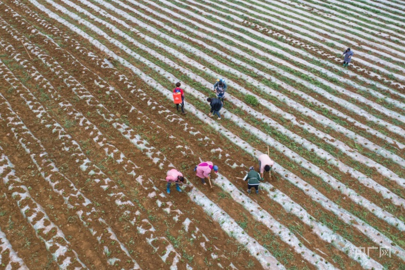 在毕节市黔西市洪水镇洪箐村辣椒种植基地,村民抢抓农时种植辣椒(央广网发 史开心 摄)