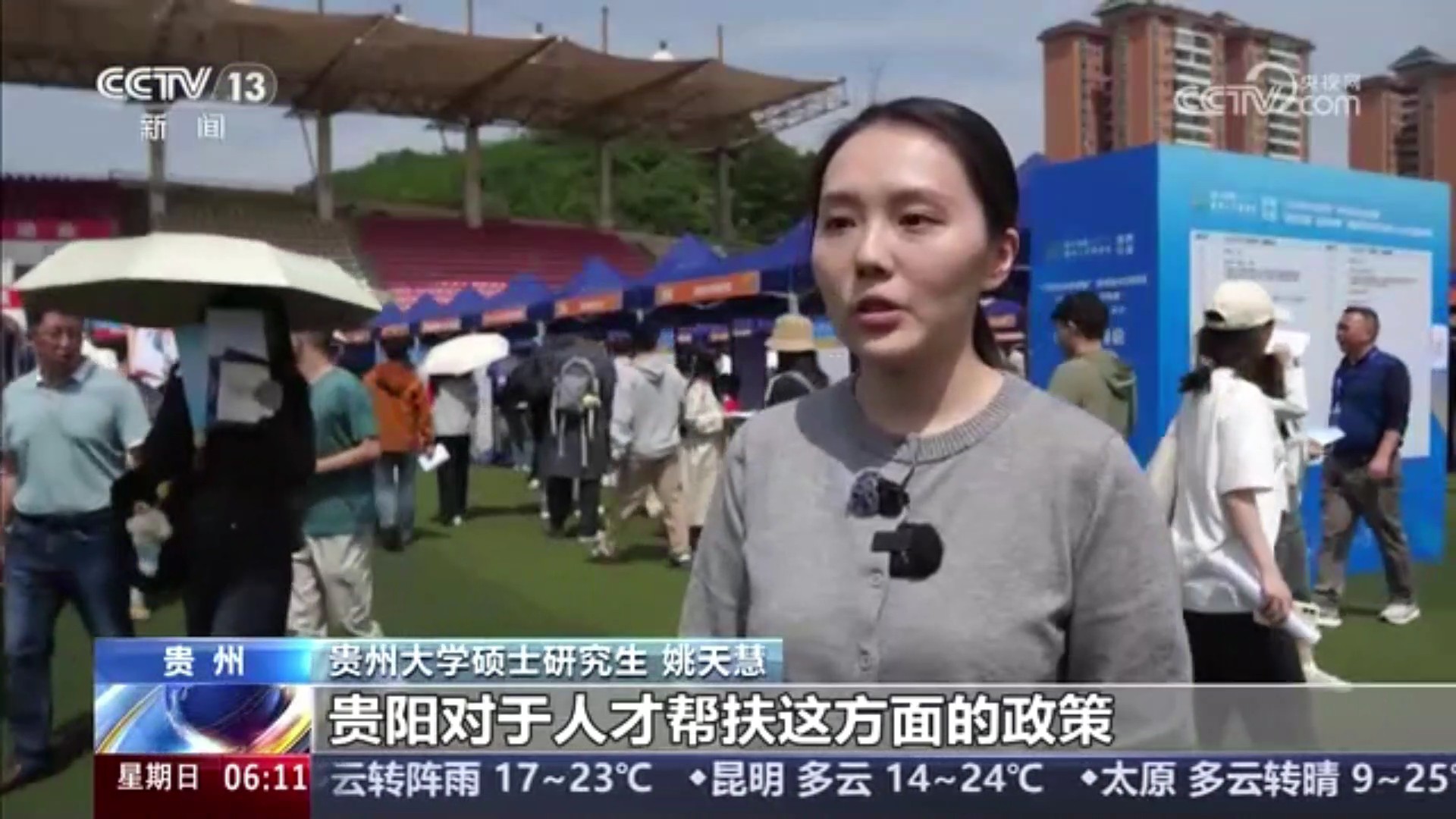 贵州大学硕士研究生姚天慧说:“贵阳对于人才帮扶这方面的政策,比如说安家费、筑巢(人才)公寓,还有一些针对于应届生就业政策倾斜,都对我很有吸引力。”
