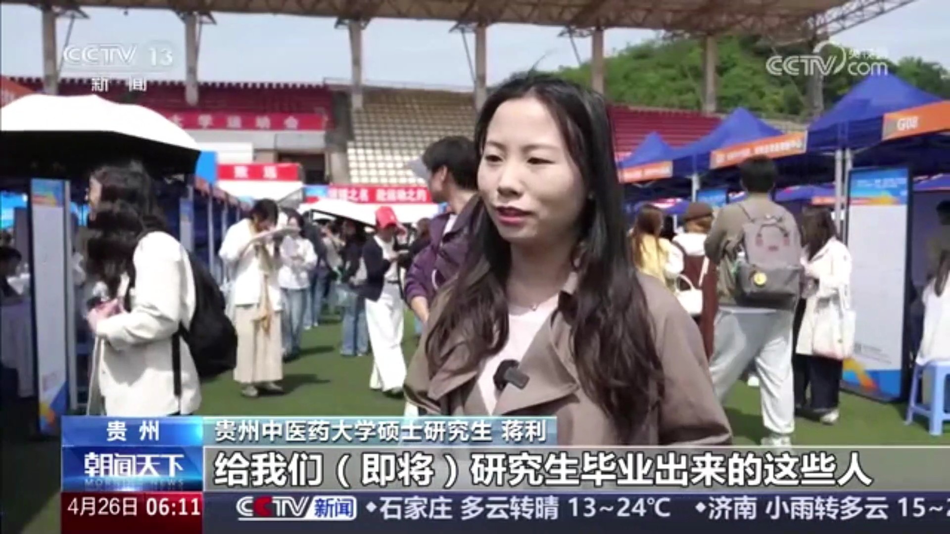 贵州中医药大学硕士研究生蒋利说:“给我们即将研究生毕业的这些人提供了很多的岗位,给的这些人才引进的条件也挺好的。”