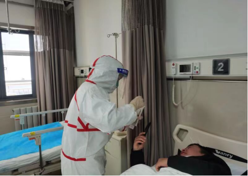 图2.疾控应急队员在隔离病房对病例开展个案调查