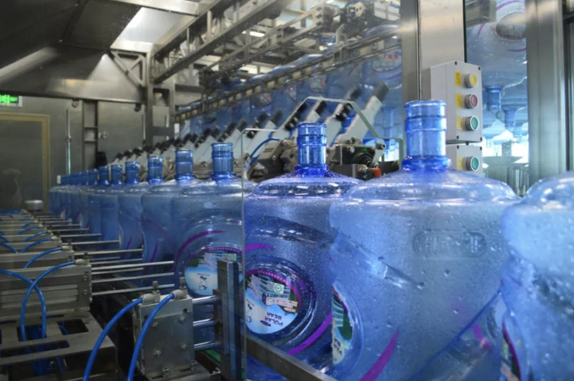 北极熊桶装水罐装前,会由下桶人员初检、分检、再经上桶人员检验和去除残留封口标签;挑出异物异味桶进行后续处理;无异物异味空桶通过外洗机进行外观清洗,确保洁净;经过检漏设备,有漏点的空桶挑出后进行报废处理;灯检空桶外观,把有异样外观挑出进行报废处理;对通过人工检查的空桶进行内洗处理,对桶内壁黏糊物、泥巴、杂质进行高压冲击;碱洗除油污,高效消毒,保证杀菌、消毒达到卫生要求,全过程由中控PLC直接控制。