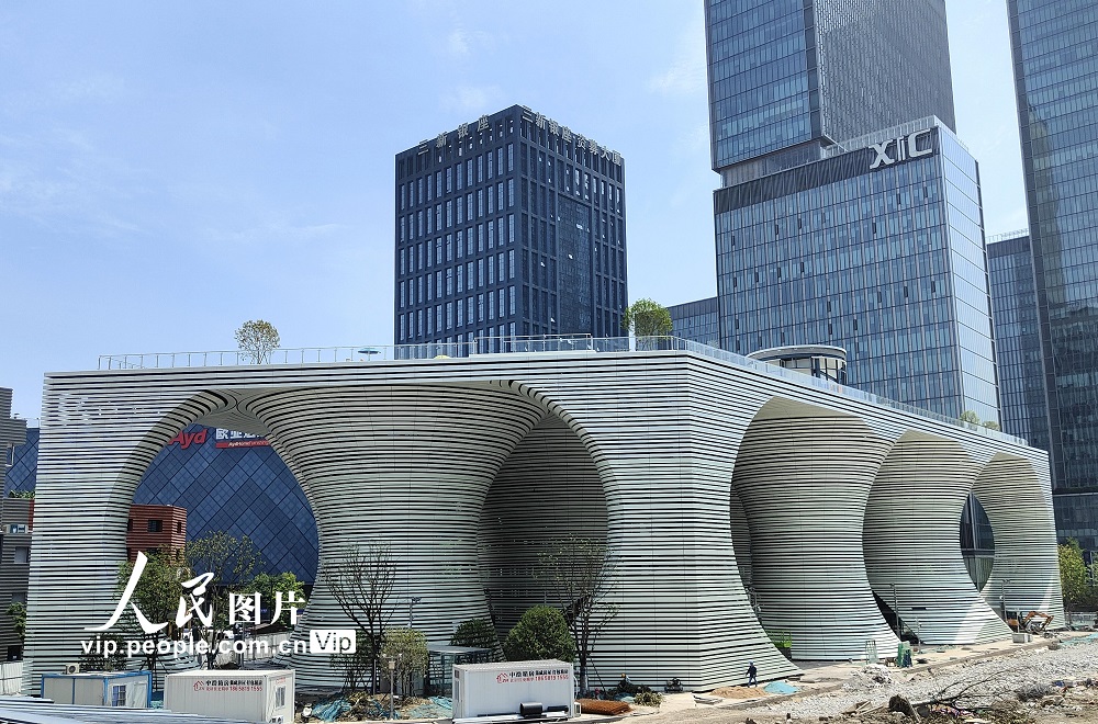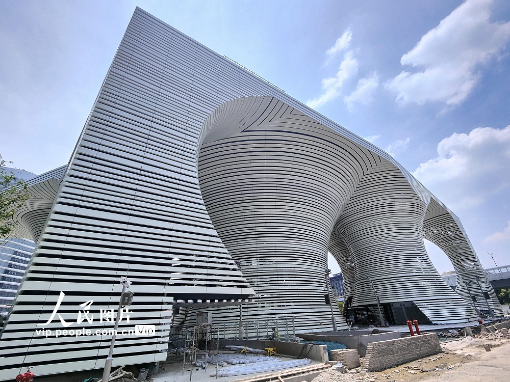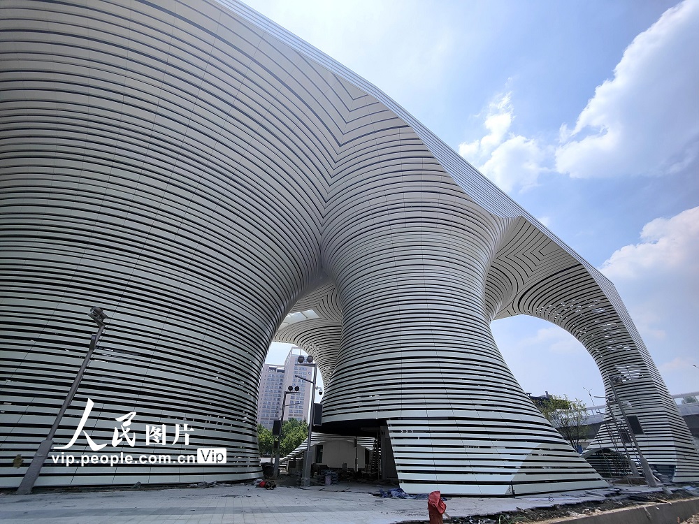 2022年6月18日,在浙江省杭州市庆春东路与秋涛路交叉口拍摄的充满科技感的杭州未来停车楼·蜻蜓公园项目。该项目总建筑面积24150平方米,地下4层,地上2层,共计拥有500个社会车位,建成后将采用智能化机器人停车方式,由机器人在地下各层将车搬运至停车位,是目前国内规模最大的潜入式AGV机器人停车项目,而屋顶层将打造成一个具有娱乐设施和屋顶花园的现代空间。徐根柱摄(人民图片网)