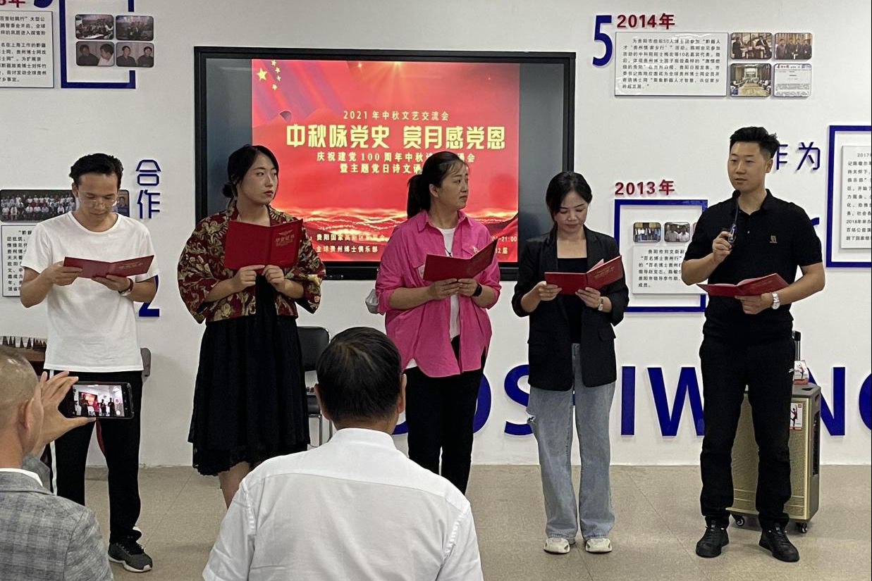 9月19日,贵阳高新区庆祝中国共产党成立100周年中秋诗歌朗诵会暨主题党日诗文诵读活动在高新区德福中心举行。