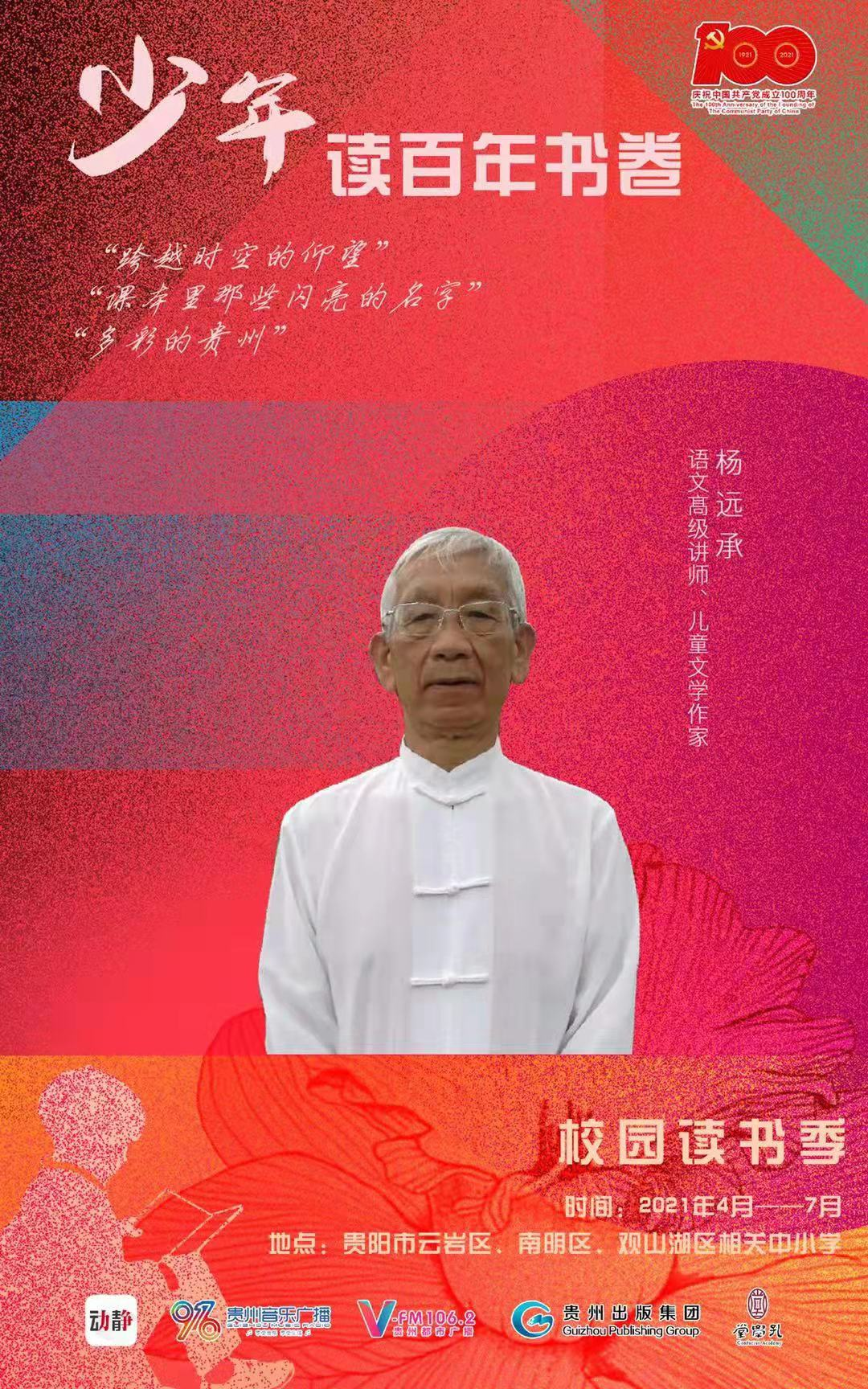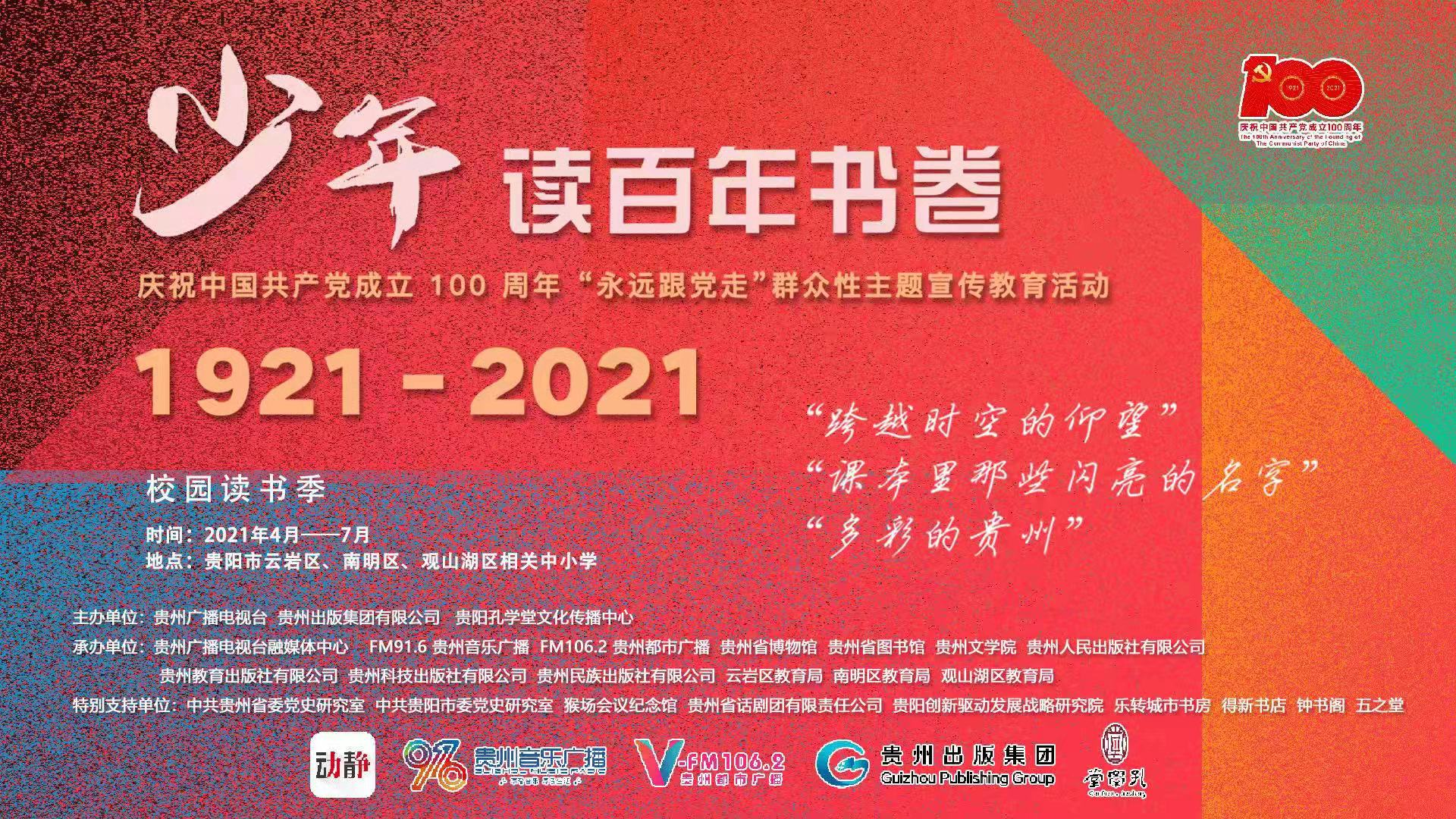 由贵州广播电视台、贵州出版集团有限公司、贵阳孔学堂文化传播中心主办的“庆祝中国共产党成立 100 周年 ‘永远跟党走’群众性主题宣传教育活动——‘少年•读百年书卷’校园读书季主题活动”将于4月27日开启首场公开课。
