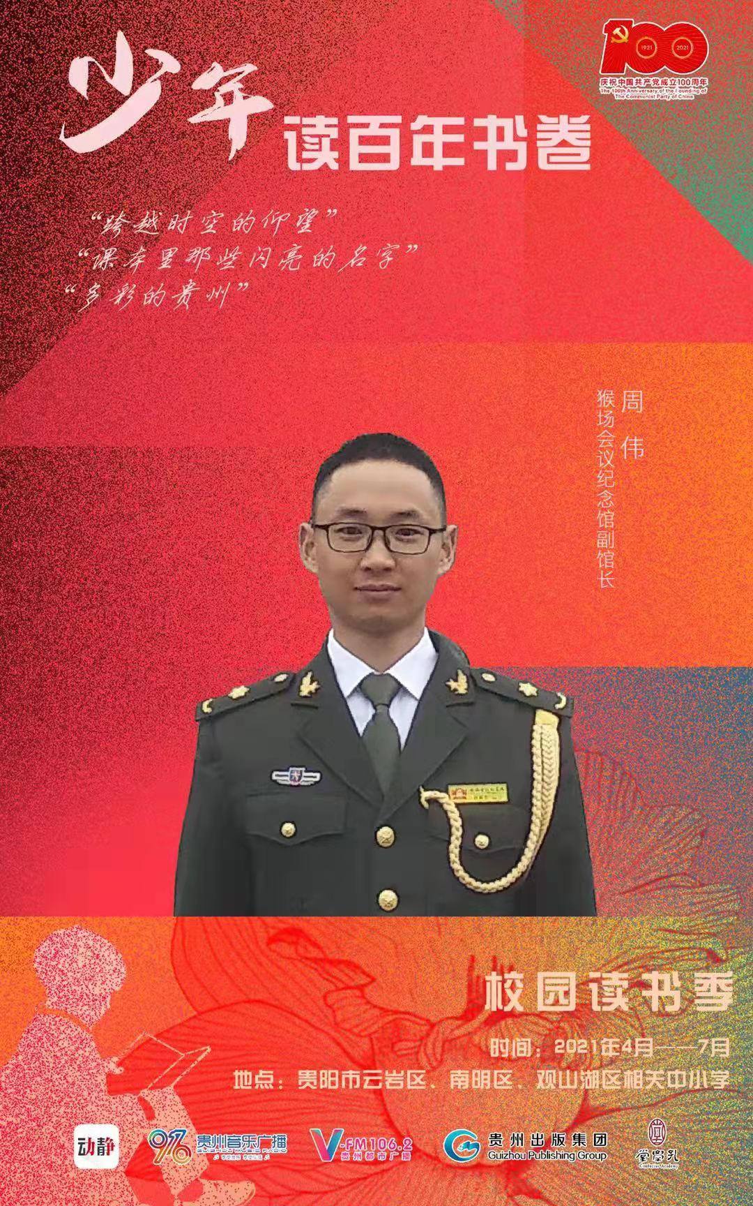 本周,将邀请到瓮安猴场会议纪念馆副馆长、讲解员周伟,退休语文高级讲师、儿童文学作家杨远承等进入校园,与大家分享百年来那些值得铭记的时刻。