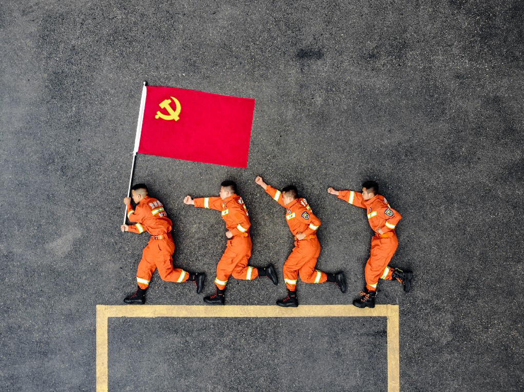 一面旗帜映初心,一颗红心永向党。为庆祝中国共产党成立101周年,发挥先锋模范作用,提振精气神,传递正能量,引领全体消防人员不忘初心、牢记使命,忠于党、听党话、跟党走。6月28日,南明区消防救援大队开展“拍摄一张与党旗创意合影”活动,多角度、多视角,多层次用镜头记录对建党101周年的美好祝愿,践行对党的庄严承诺,抒发对党的真挚情感。