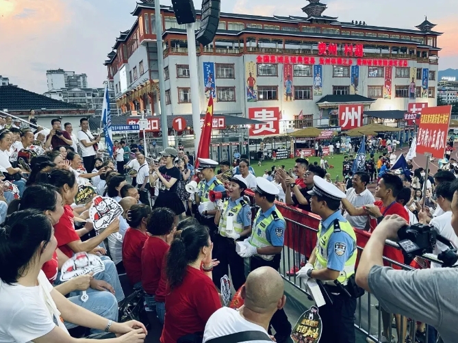“提醒一下各位,来榕江观赛一定要高高兴兴出门,平平安安回家”。8月31日,民警走进“村超”现场,让群众在感受赛场激情飞扬的同时,带去一场有针对性的交通安全知识普及宣传。