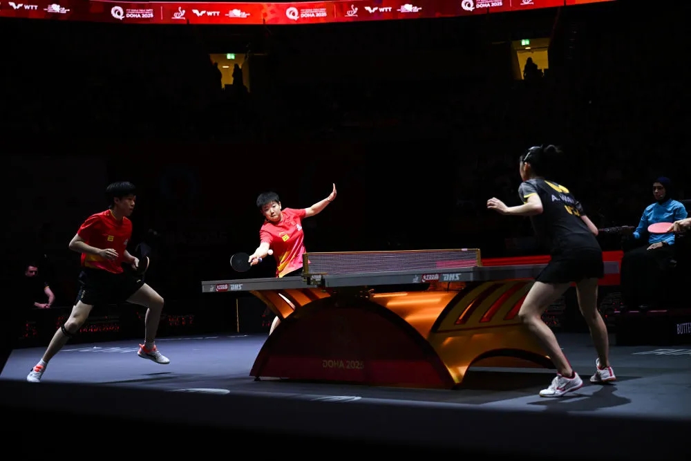 2025多哈世乒赛18日继续进行,中国队当天出战5场单打和3场双打比赛全部获胜,其中王楚钦/孙颖莎赢下卫冕之旅的首战,晋级混双32强。