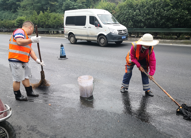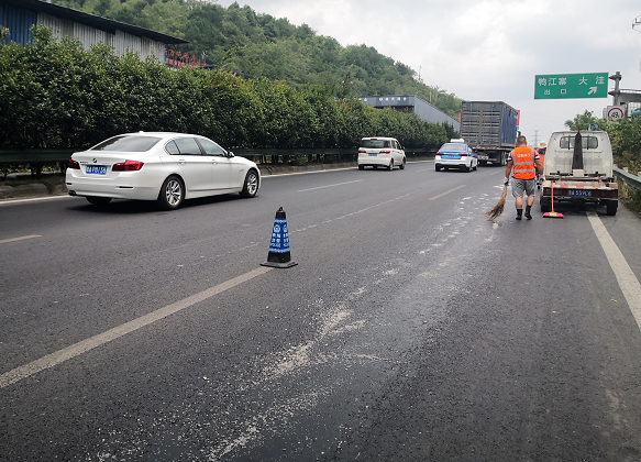 注意!贵阳这条路上机油撒了一地,已有多名司机被摔伤