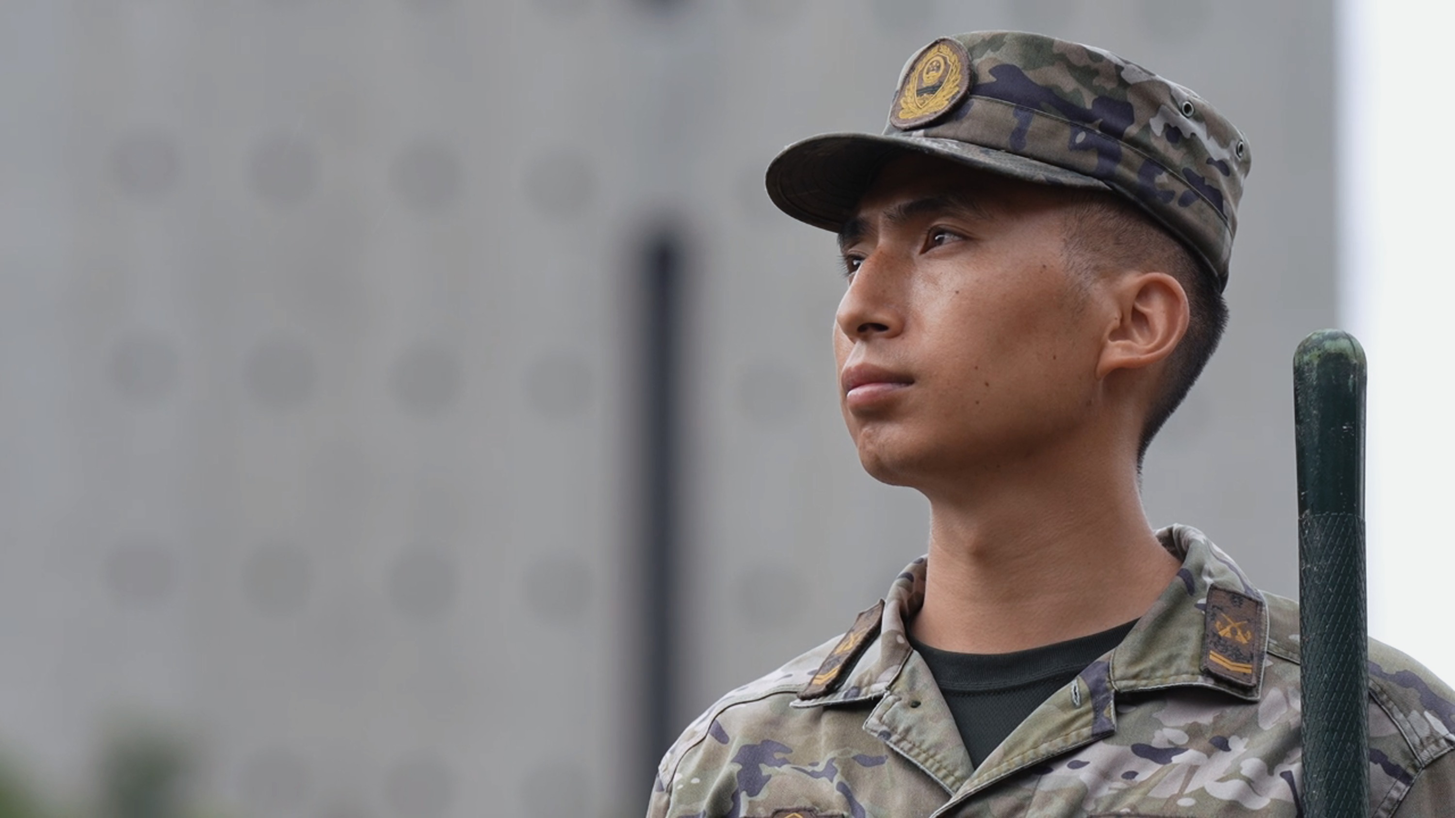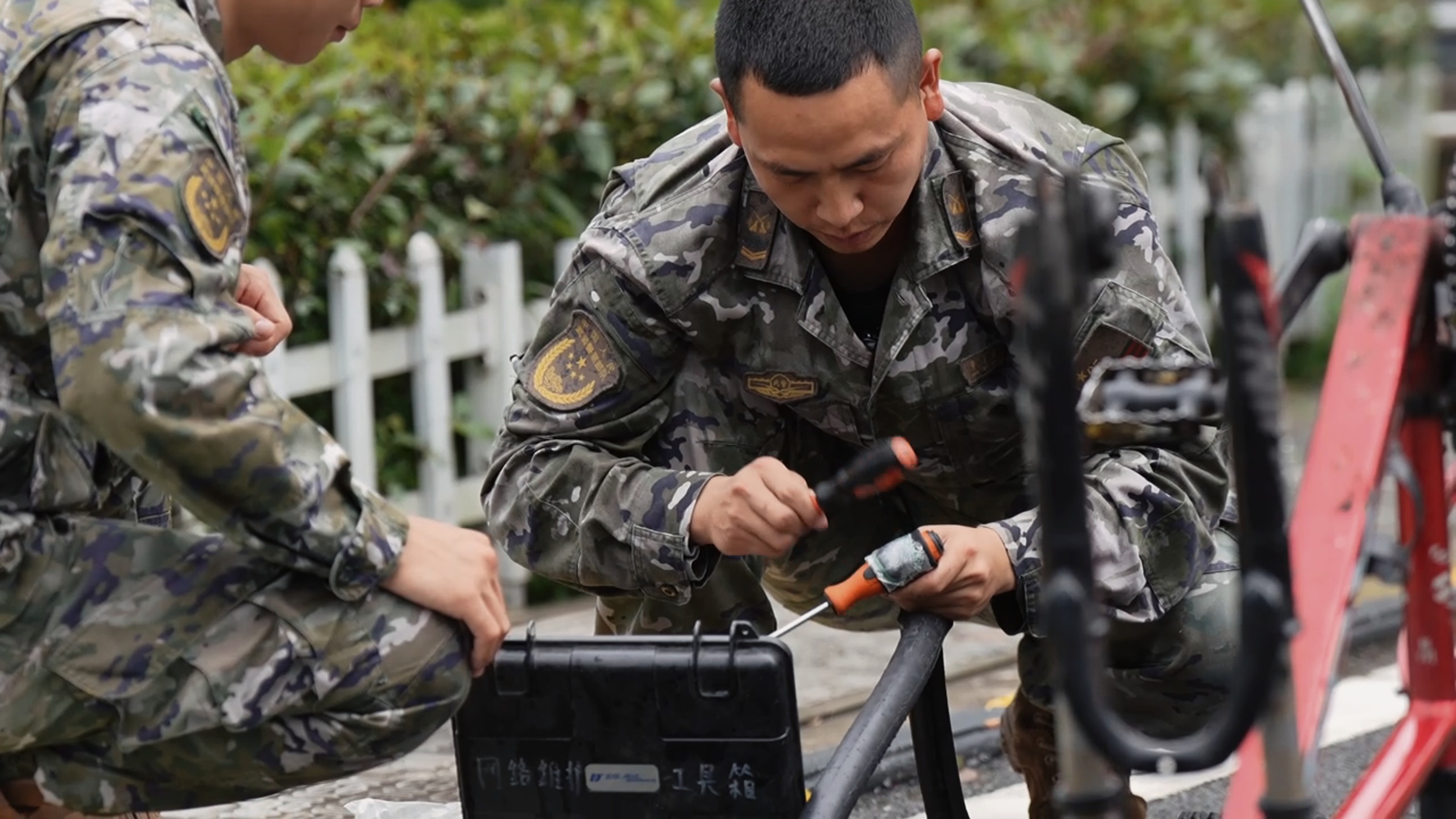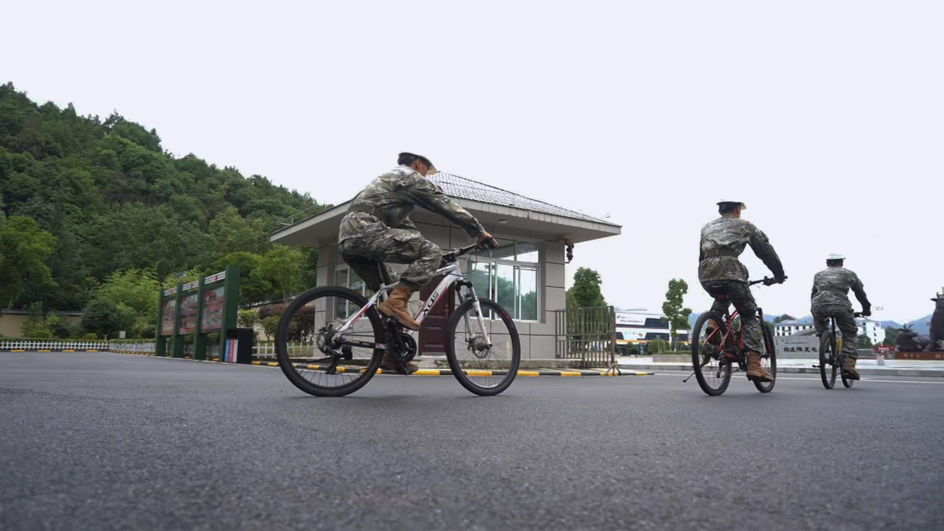 武警战士骑着自行车