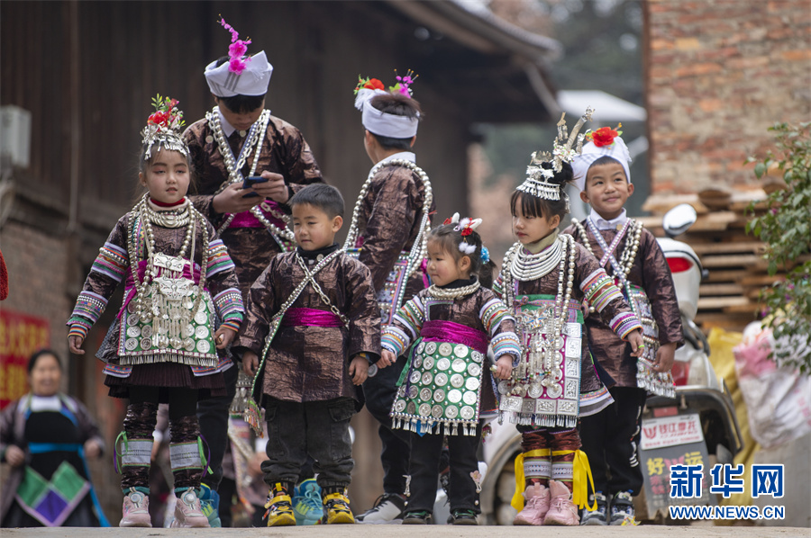 1月1日,在贵州省从江县下江镇秋里苗寨,苗族小朋友身着盛装准备参加芦笙节活动。新华网发(吴德军摄)