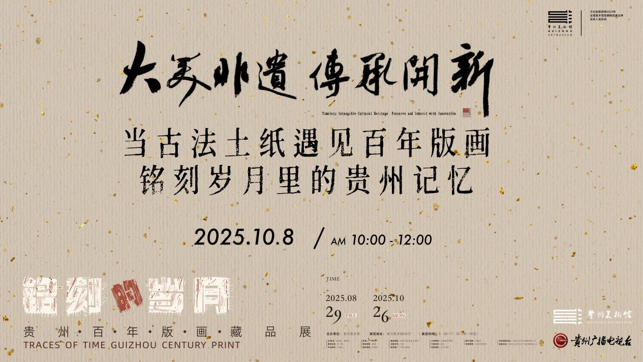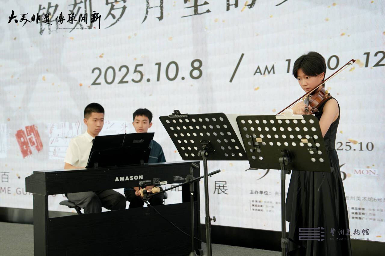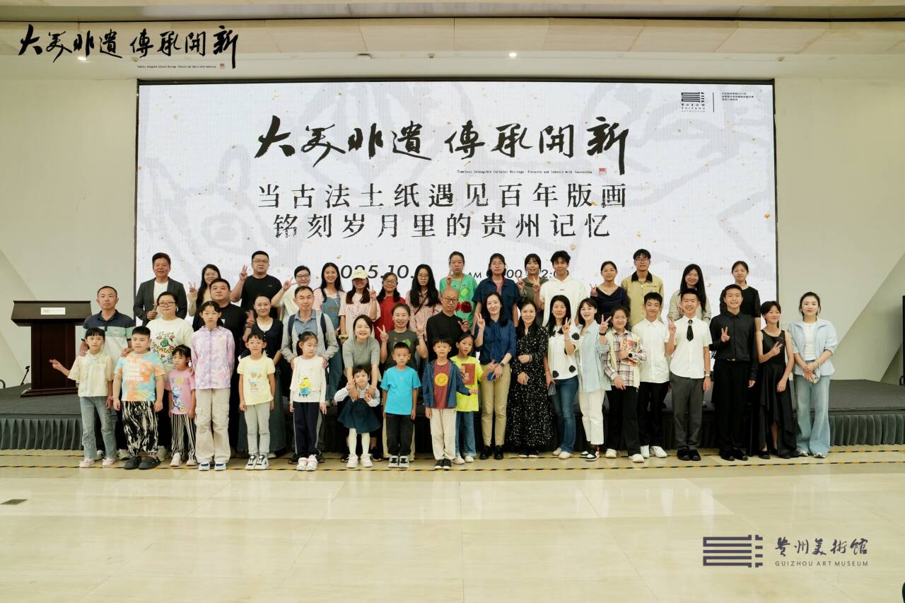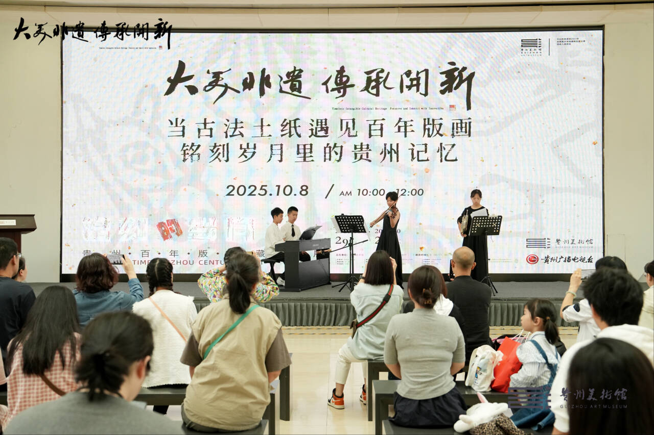 10月8日,由贵州画院(贵州美术馆)主办、贵州广播电视台教育事业部承办的“【大美非遗 传承开新】当古法土纸遇见百年版画:铭刻岁月里的贵州记忆”活动圆满落幕。活动现场,古法土纸以质朴肌理奠定沉稳基调,百年木刻用深刻线条勾勒视觉韵律,而现场演奏的乐曲则为之注入流动的灵魂——三者交织共鸣,传统与现代、视觉与听觉在此完美融合,共同奏响了一曲多维感知的华美乐章。