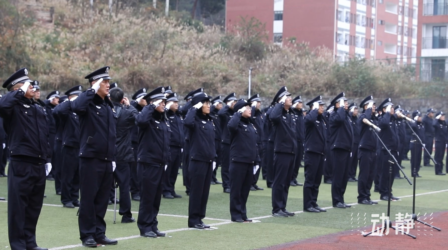 伴随着响亮的口令,升旗手高扬警旗,鲜艳的警旗冉冉上升。600名民警整齐列队,面向警旗重温入警誓词。