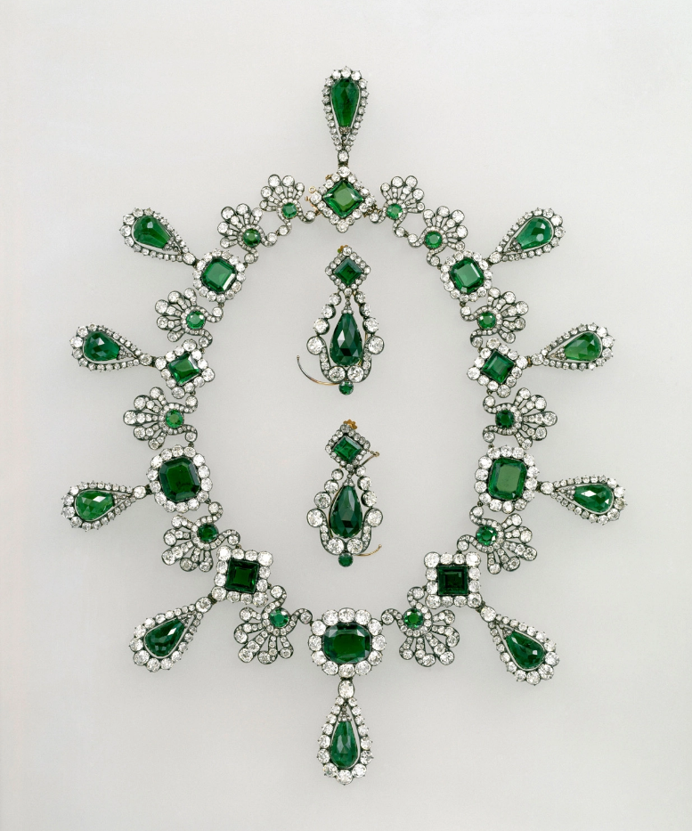 玛丽-路易丝皇后的祖母绿项链和耳环(资料图)