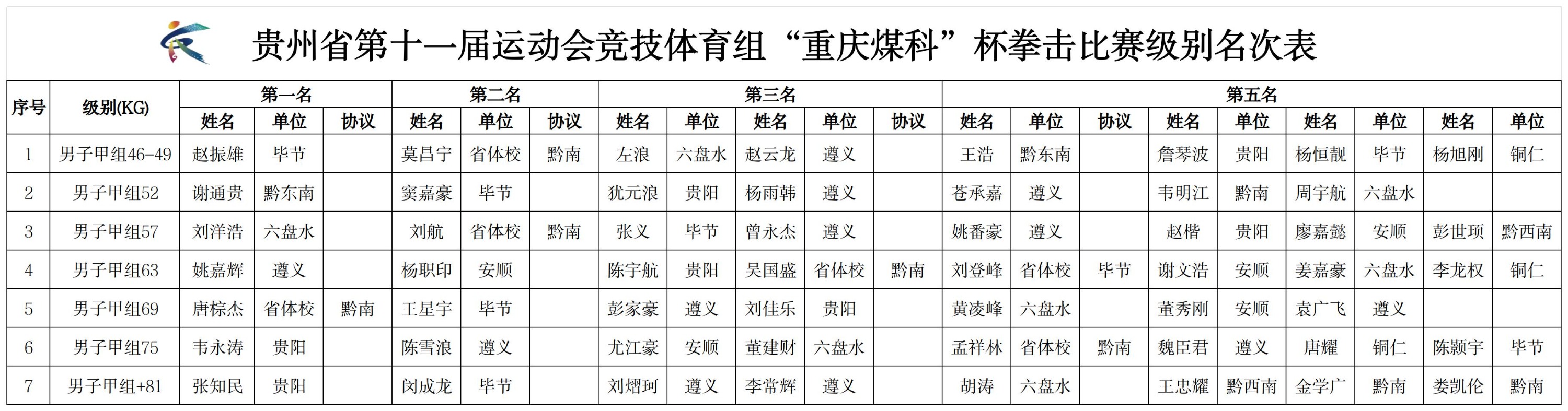 7月26日,省十一运会竞技体育组拳击比赛在六盘水市凉都体育中心落下帷幕,来自全省9个市州以及省体校的10个代表队共276名运动员经过7天的激烈比拼,各赛项成绩已见分晓。