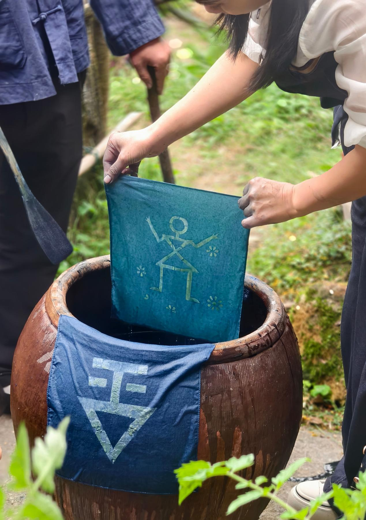 她向豆浆染传承人学习以豆浆为墨的技艺