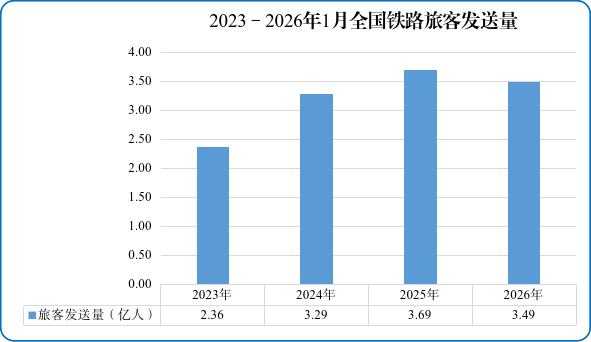 2026年1月份,全国铁路货运量持续增长,铁路建设高效推进。受春节日期影响,1月份旅客发送量同比下降。