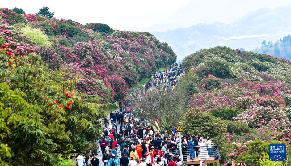 从2008年以来,百里杜鹃管理区管委会常年聘请专职森林防火队员45人,负责林区火灾隐患排查、森林病虫害防治、制止盗挖盗采等工作。18年来,无论风吹雨淋,严寒酷暑,森林防火队员们每天在林海山间值守巡查,在有“地球彩带,世界花园”之称的景区守护杜鹃花开。新华社记者 杨文斌 摄