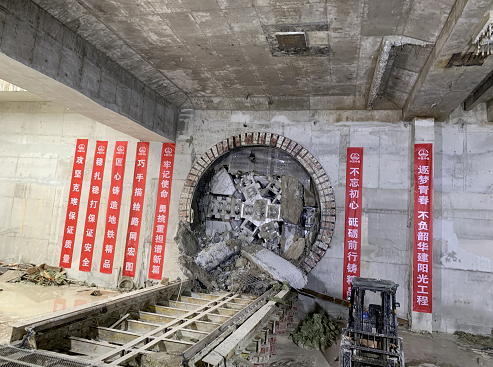 11月22日上午11点18分,随着“黔进7号”盾构机刀盘破除洞门缓缓而出,不偏不倚地出现在洞门钢环内,标志着中国中铁广州工程局承建的贵阳轨道交通3号线最长盾构区间顺利贯通,比计划工期提前24天贯通。