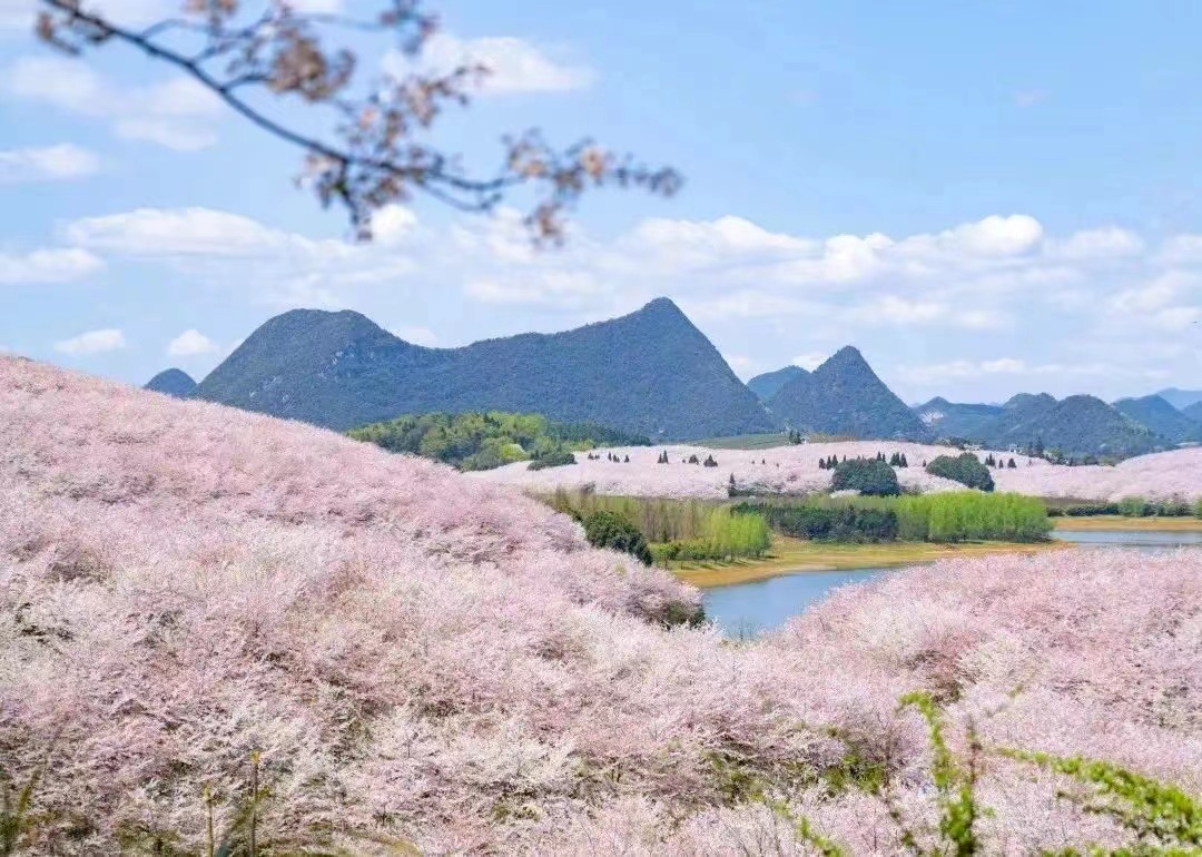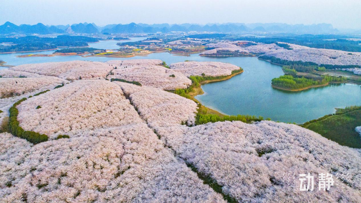 2月下旬以来,贵阳市观山湖区百花湖镇上麦城村千亩樱花迎来盛花期,粉白花海如云似霞,与青山绿水、金黄油菜花相映成画。