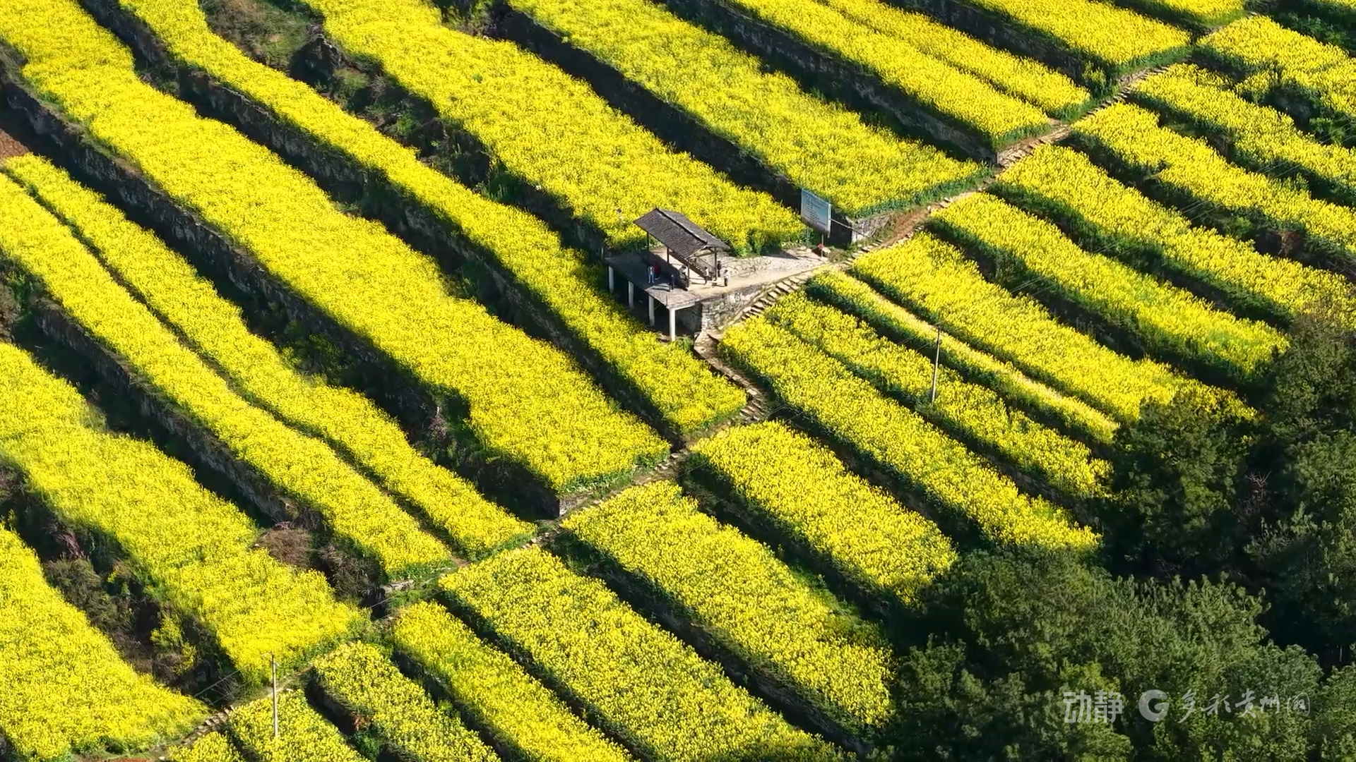 当下,遵义市桐梓县尧龙山镇的7600余亩梯田油菜花迎来盛花期,层层梯田与漫山遍野的金黄油菜花相互映衬,宛如一幅天然的春日田园巨作,吸引共赴这场金色之约。