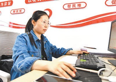 陈果在登记录入外出务工人员信息。本报记者 赵帅杰摄