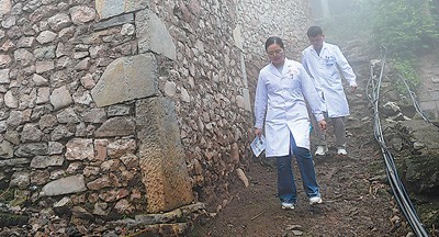 老厂乡卫生院支医人员、医生傲瑞远(右)和护士何喜到村里巡诊。毛 虹摄