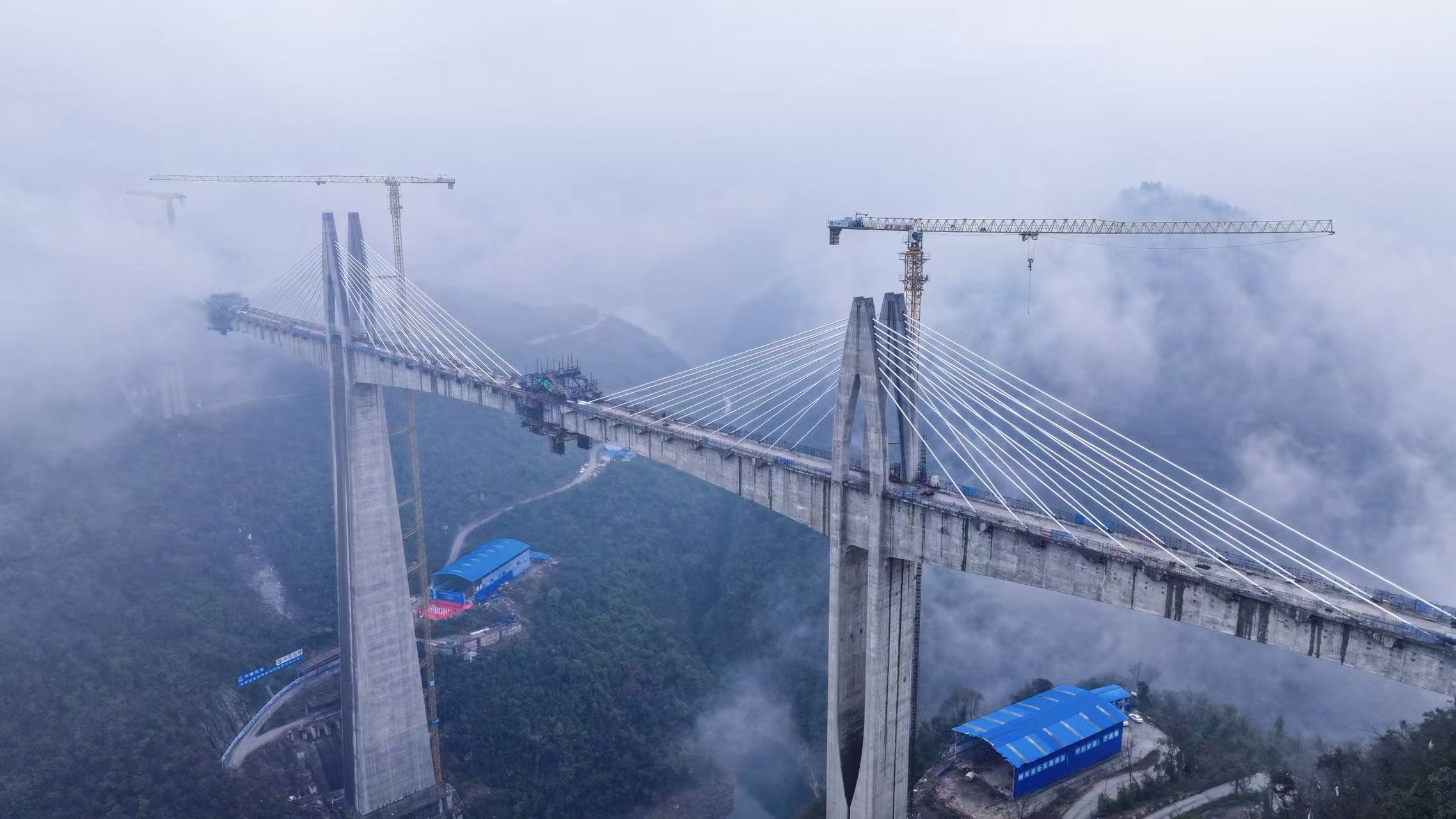 建设过程中,面临地质复杂、环保要求高、作业面狭窄、峡谷横风等多重挑战。团队通过无人机扫描、BIM建模、北斗监测系统等数字化手段,并创新采用“云端建造工厂——造墩机”智能施工装备,实现了高空“类工厂环境”作业,施工效率提升约30%。
