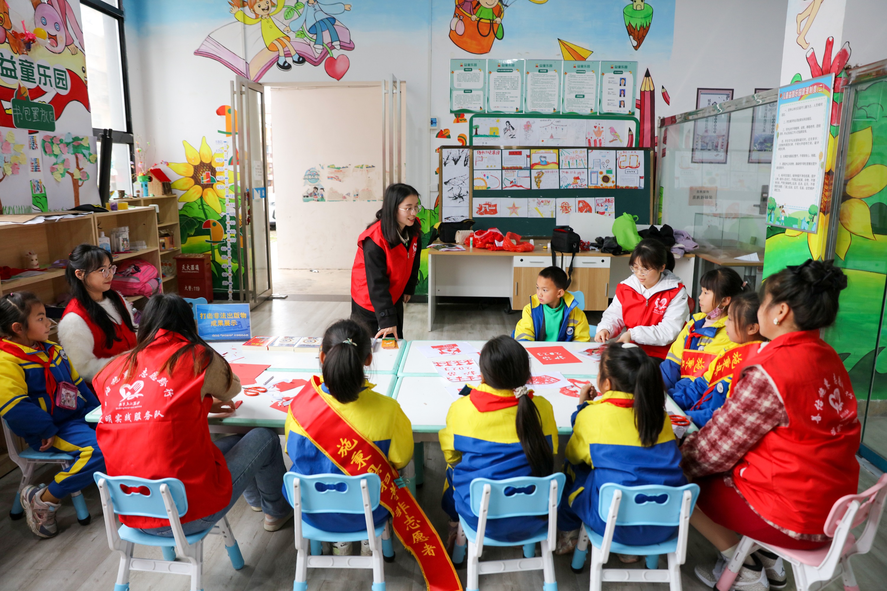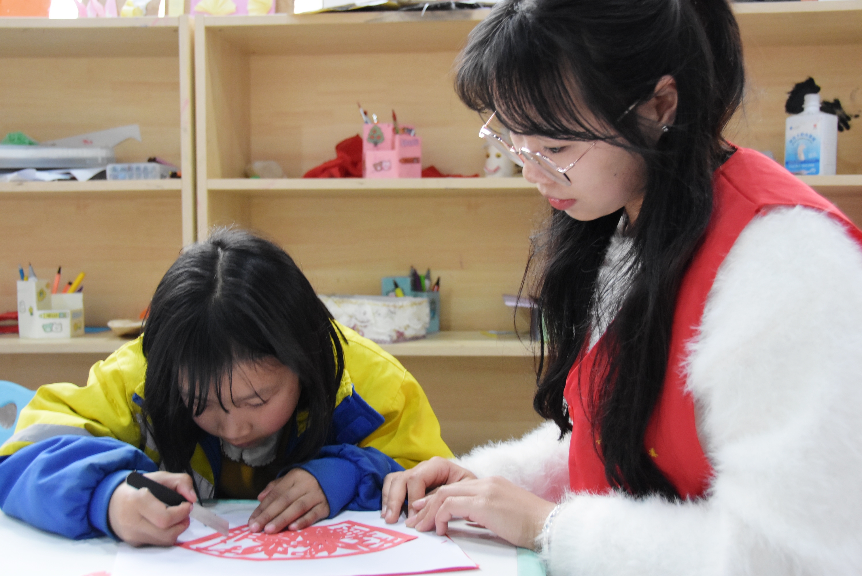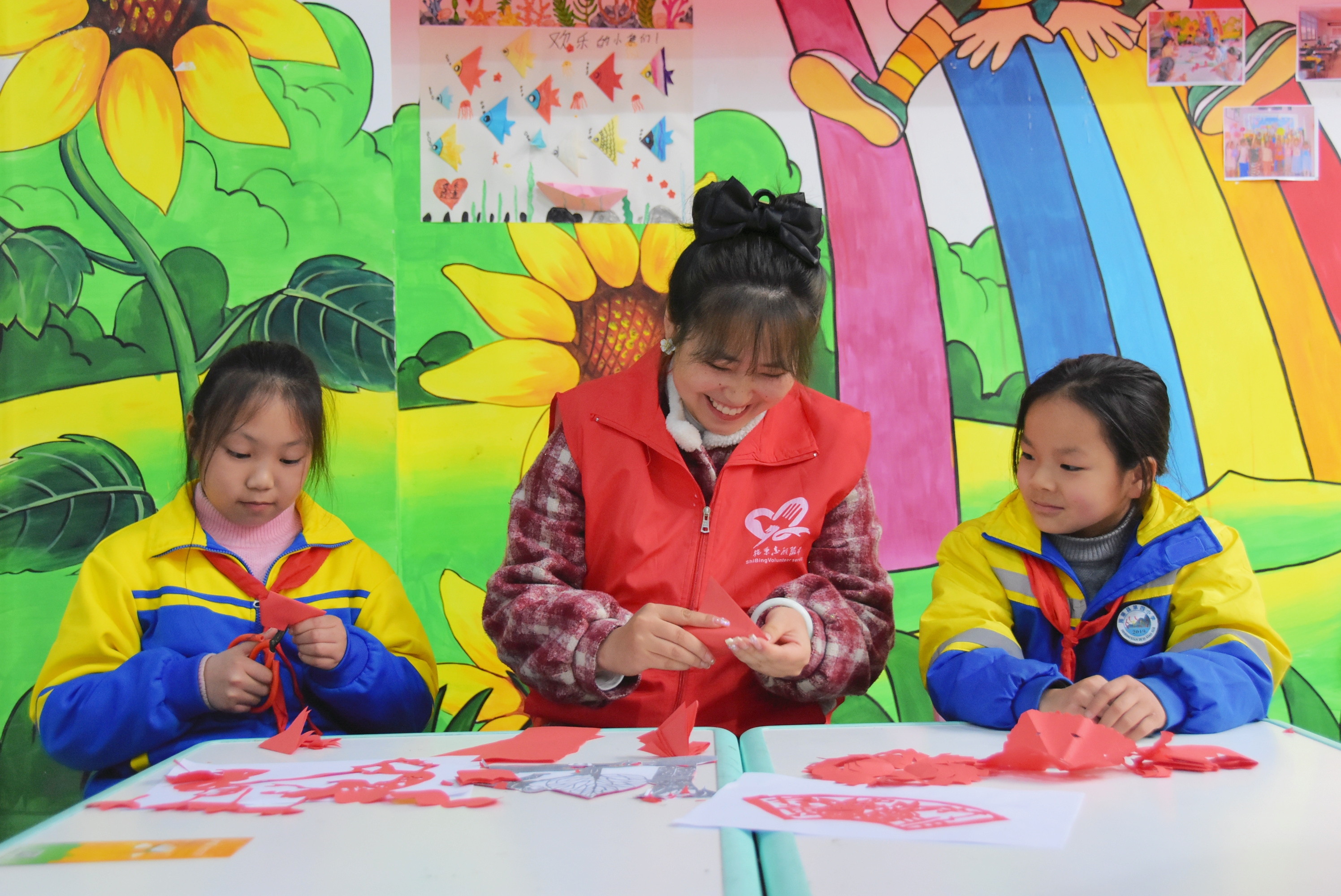 走进贵州省黔东南州施秉县城关镇南官营社区益童乐园,一场趣味剪纸与“扫黄打非”结合的“沉浸式”课堂正在进行。