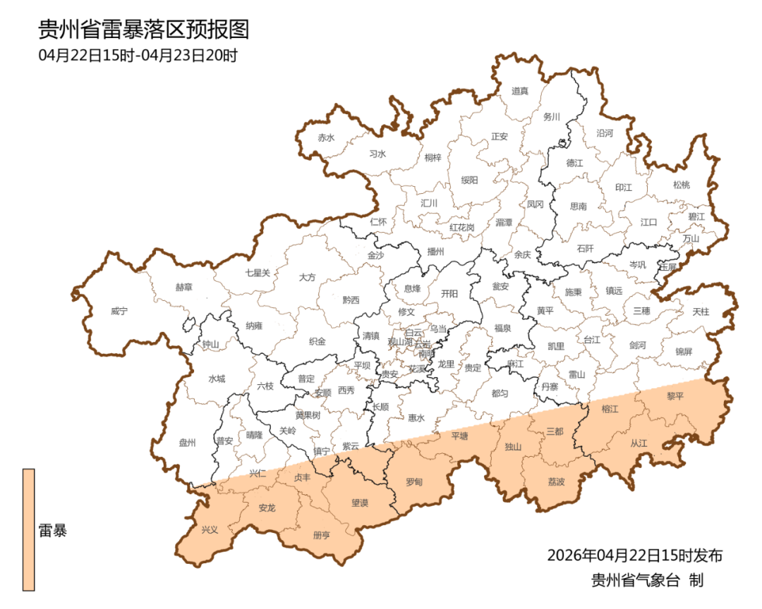 4月22日傍晚到23日白天,分散阵雨或雷雨转阴天间多云;