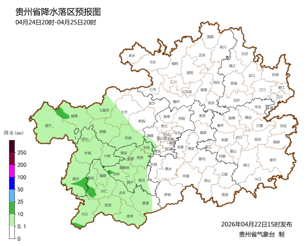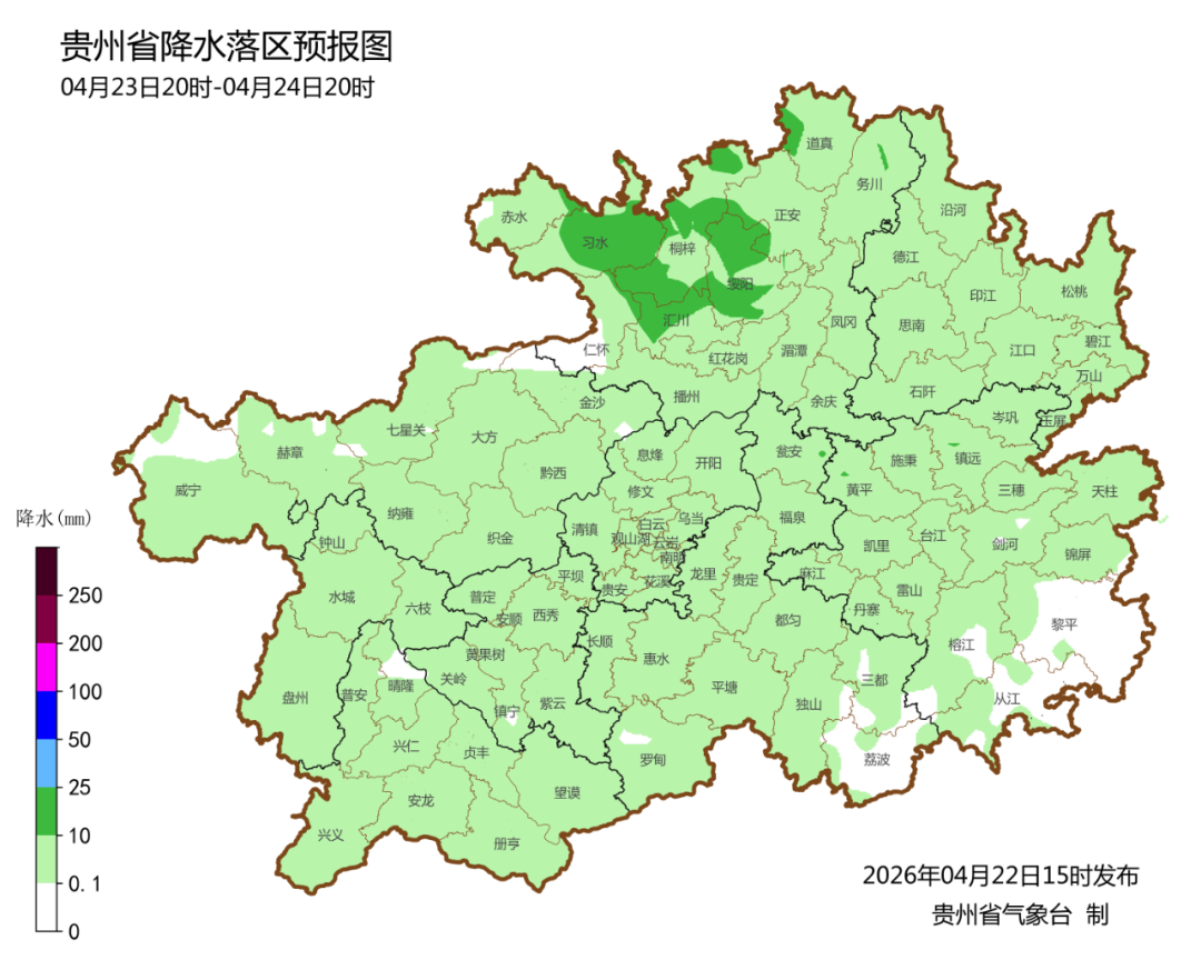 4月23夜间到24日白天,全省阴天有分散阵雨或雷雨。