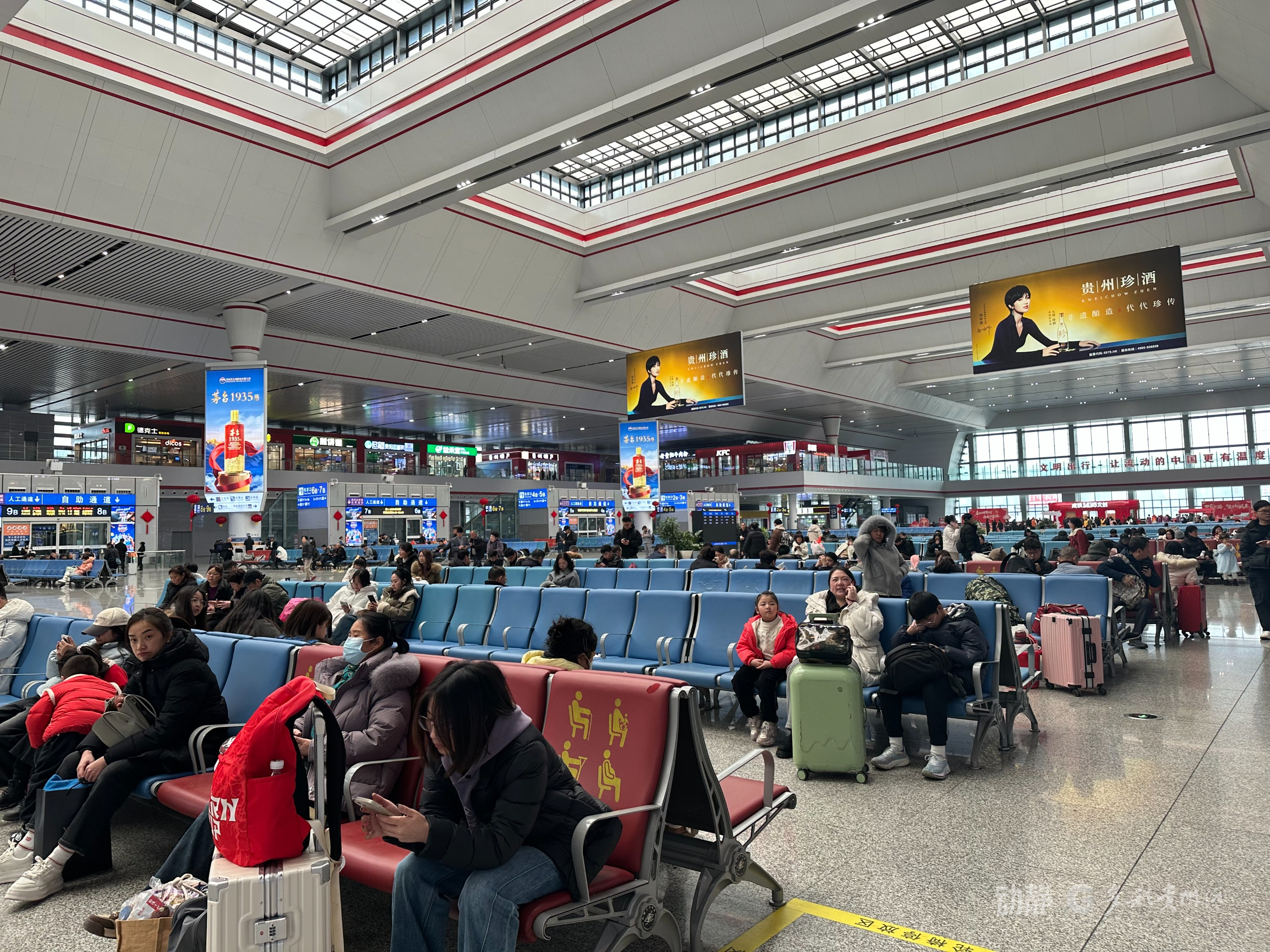2026年春运于2月2日正式开启,至3月13日结束,为期40天。上午10点半,动静记者探访贵阳北站候车大厅了解到,根据火车票提前预售情况,该站今日预计发送旅客超5.7万人,与上月日均客流基本持平。