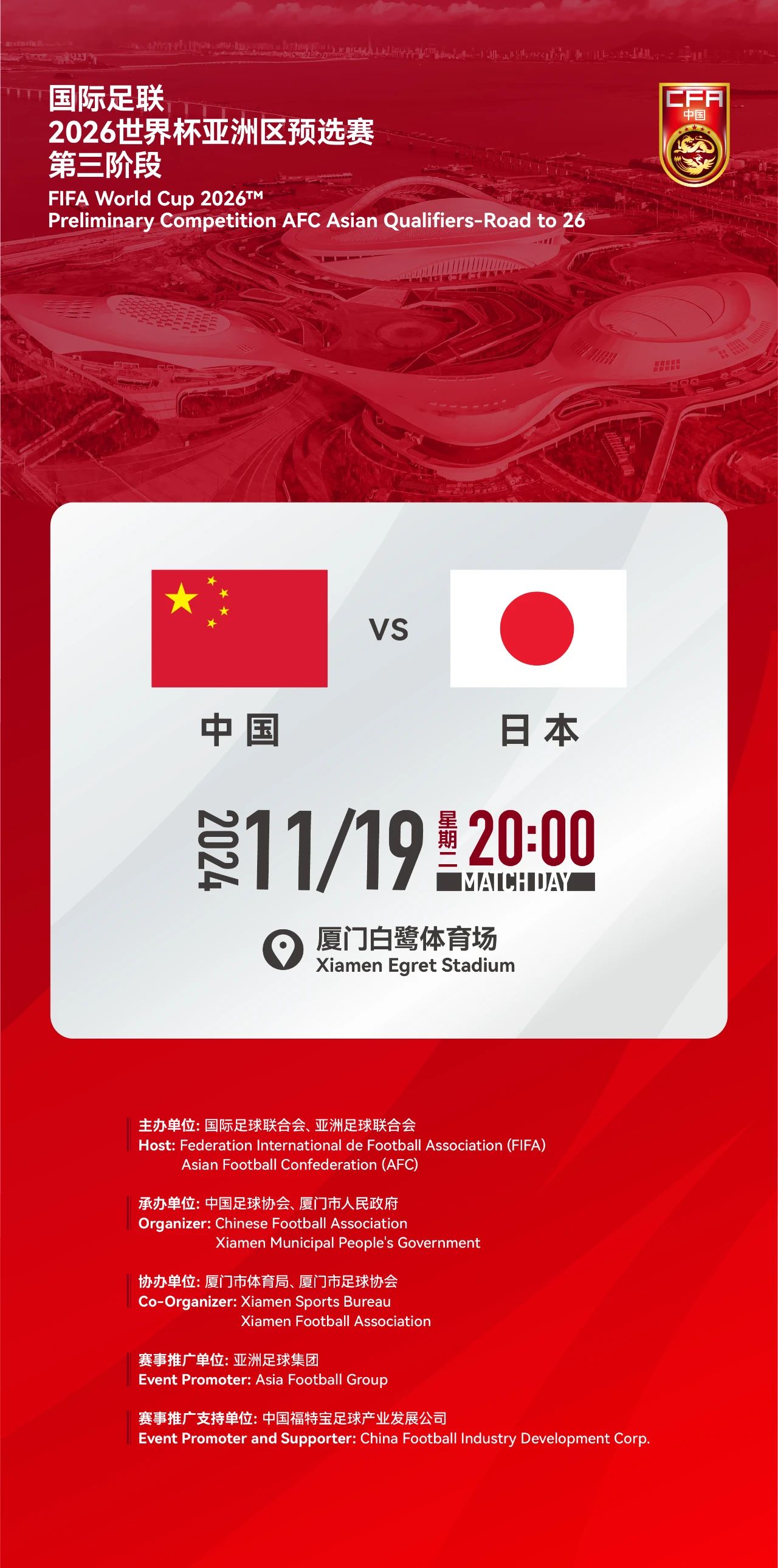 国足主场对阵日本队,开球时间确定
