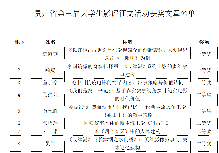 贵州省第三届大学生影评征文活动由贵州省文学艺术界联合会主办,贵州省电影家协会、《电影评介》杂志社承办,省内各高等院校协办。