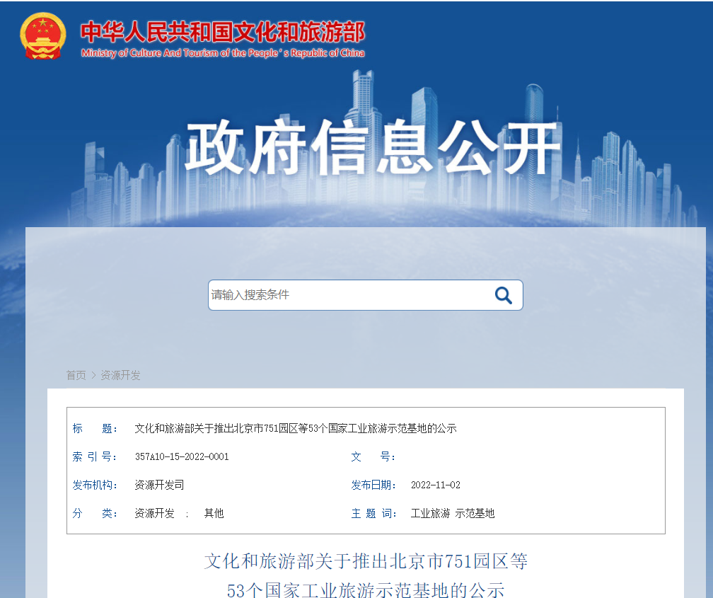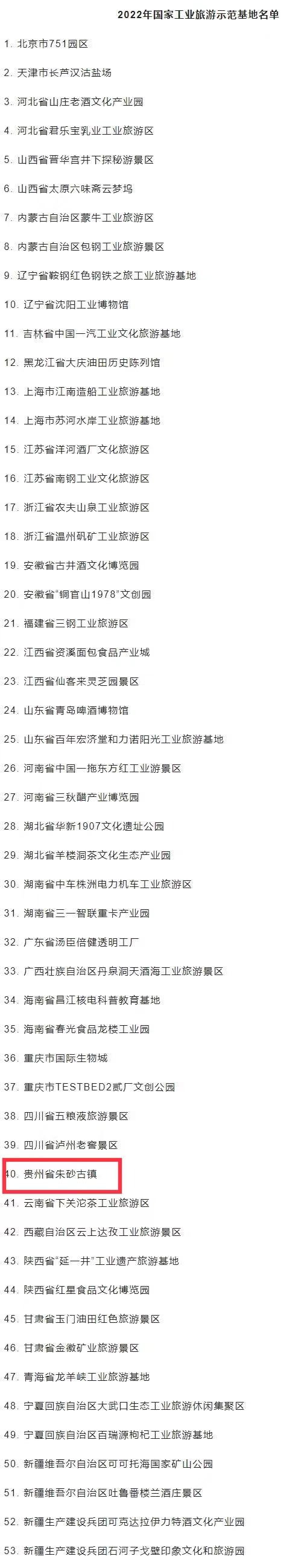 文化和旅游部发布公告,确定北京市751园区、贵州省朱砂古镇等53家单位为国家工业旅游示范基地。