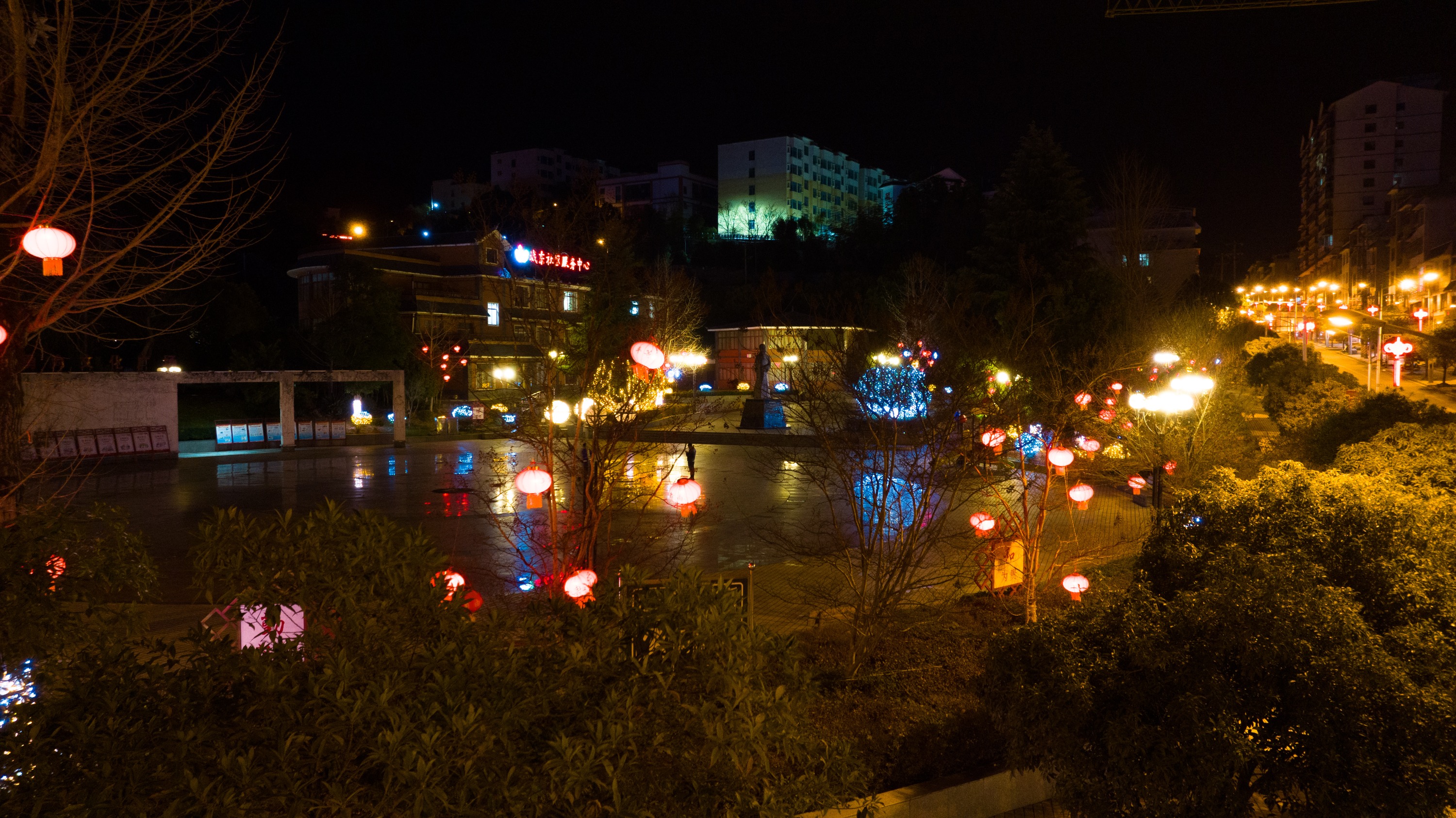 新春佳节,麻江县的大街小巷装扮一新,每当夜幕降临,城区的道路旁、树梢上、公园里、广场上都灯火璀璨、流光溢彩、五彩斑斓,犹如一幅缤纷画卷。