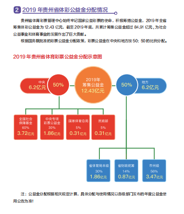《报告》还翔实披露了2019年贵州体彩公益金的筹集、分配和使用情况。此外,贵州体彩还通过“公益体彩快乐操场”、“旭日”助学等公益活动,播撒公益体彩的爱心,并积极参与扶贫攻坚,探索具有体育彩票特色的体育扶贫之路。同时,以“爱彩爱心社”为代表的体彩代销者和工作人员也积极投入公益志愿行动中,传递公益体彩的温情。