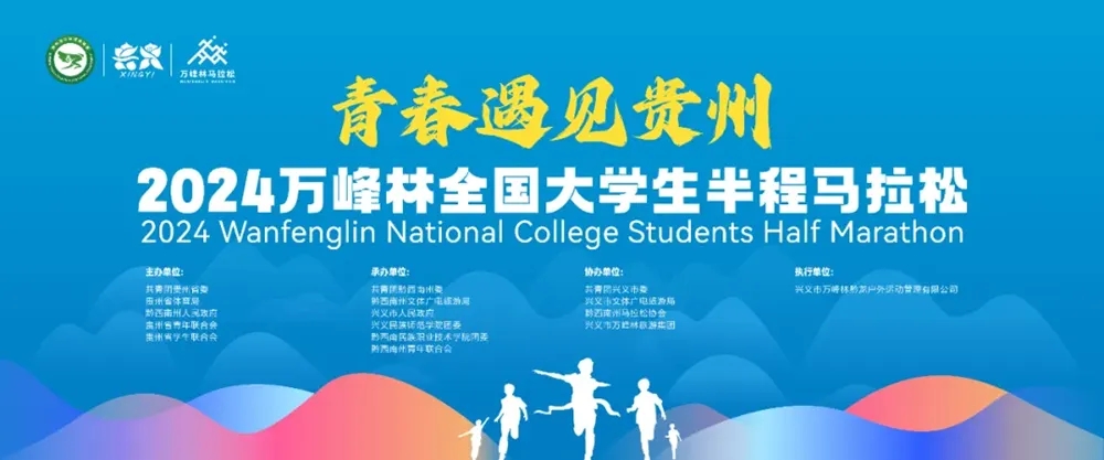 青春遇见贵州·2024万峰林全国大学生半程马拉松邀请赛由共青团贵州省委、贵州省体育局、黔西南州人民政府、贵州省青年联合会、贵州省学生联合会主办,共青团黔西南州委、黔西南州文体广电旅游局、兴义市人民政府、兴义民族师范学院团委、黔西南民族职业技术学院团委、黔西南州青年联合会承办。