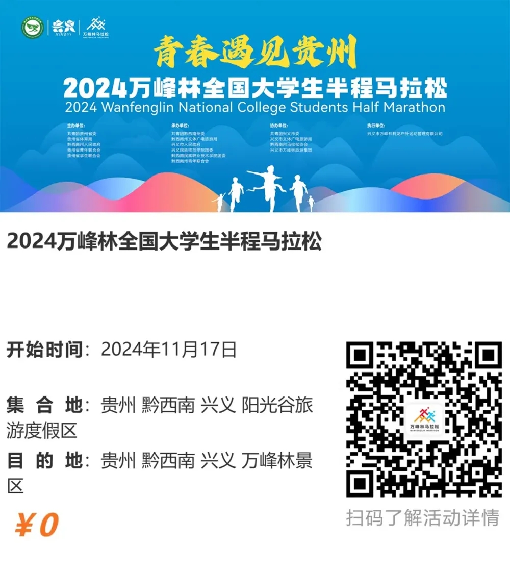 青春遇见贵州·2024万峰林全国大学生半程马拉松邀请赛火热报名中!