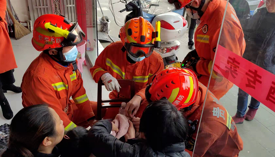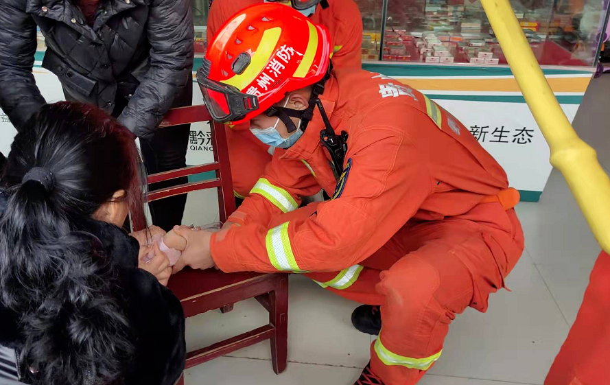12月22日下午两点多钟,在贞丰县龙场镇街上,一名女童手指被卡住需要救援。