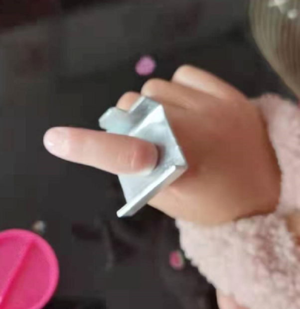 消防员到场后发现,女童右手食指被一个贴片卡住。据孩子家人介绍,女子独自玩耍时,随手捡起一块铁片玩耍,不小心将手指伸进铁片中间的一个孔洞内,导致手指被卡无法取出。